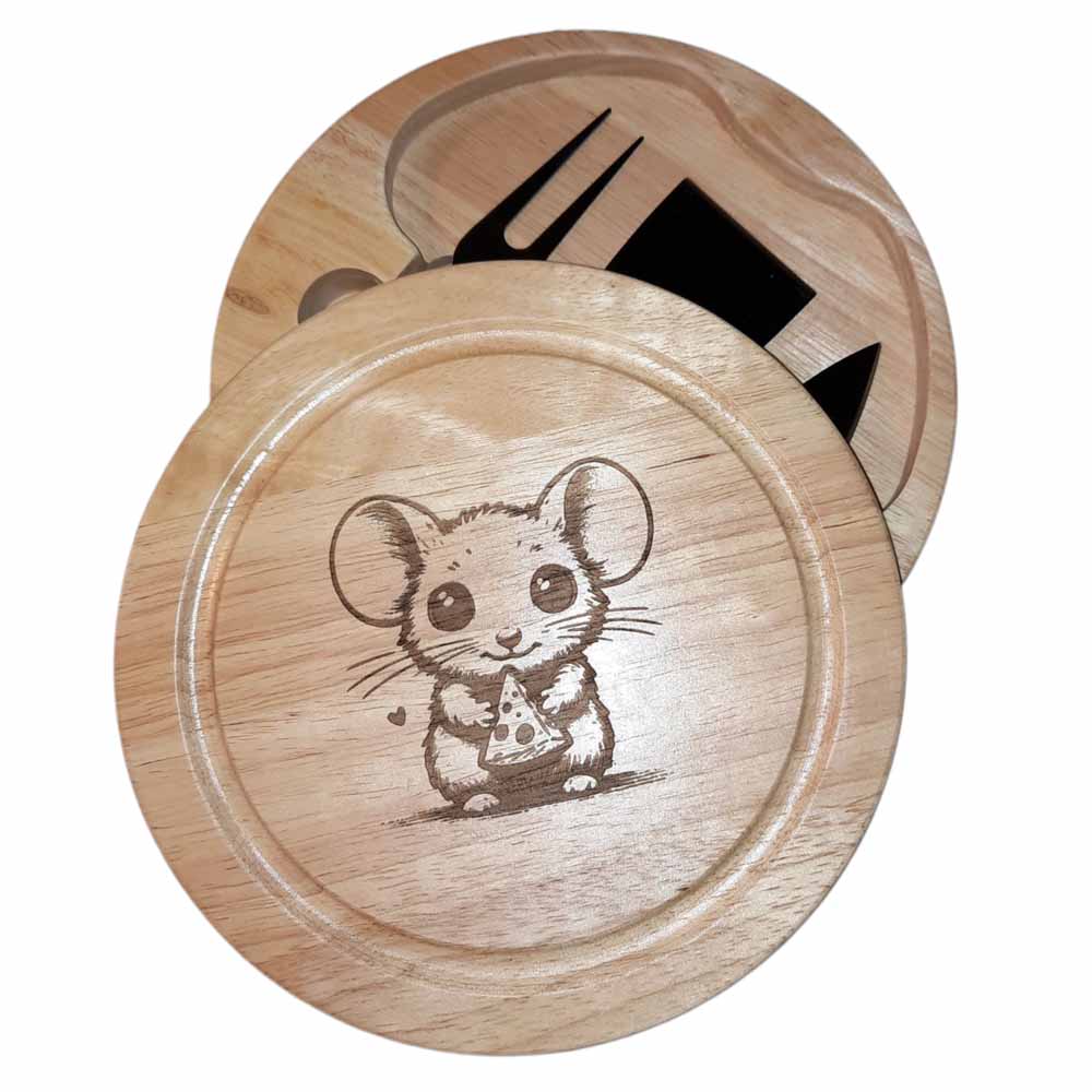 This compact set comprises small cheese board with 3 tools. Etched with a cheese and mouse design, this will look lovely on any shelf or worksurface when not in use.