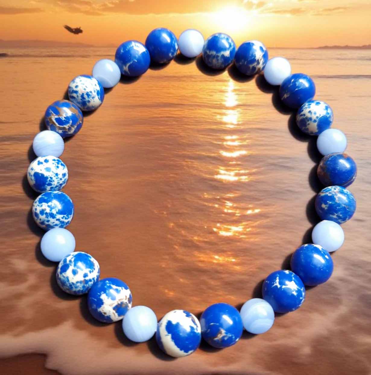 Two tone blue stone beads; dark jasper and light blue agate.