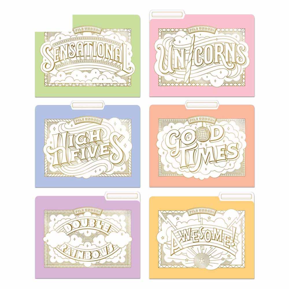 With sumptuous foil stamping and elegant hand-lettering, these file folders will look good just sitting on your desk with the rest of your desk accessories. But more than a pretty face, they meld the stress-busting powers of colouring and the fulfilling act of categorizing your paperwork.