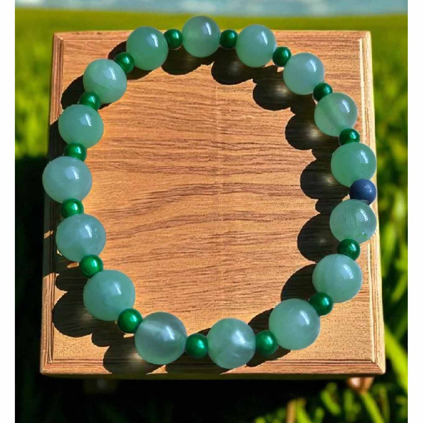 Green calcite beads separated by small, dark green miracle beads. Elasticated for comfort.