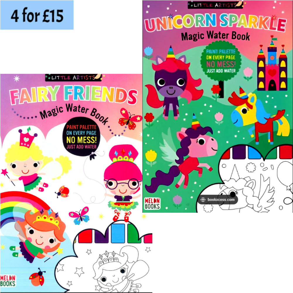 Each of the 2 books contains 12 pages to paint. All you need is a brush and some water.