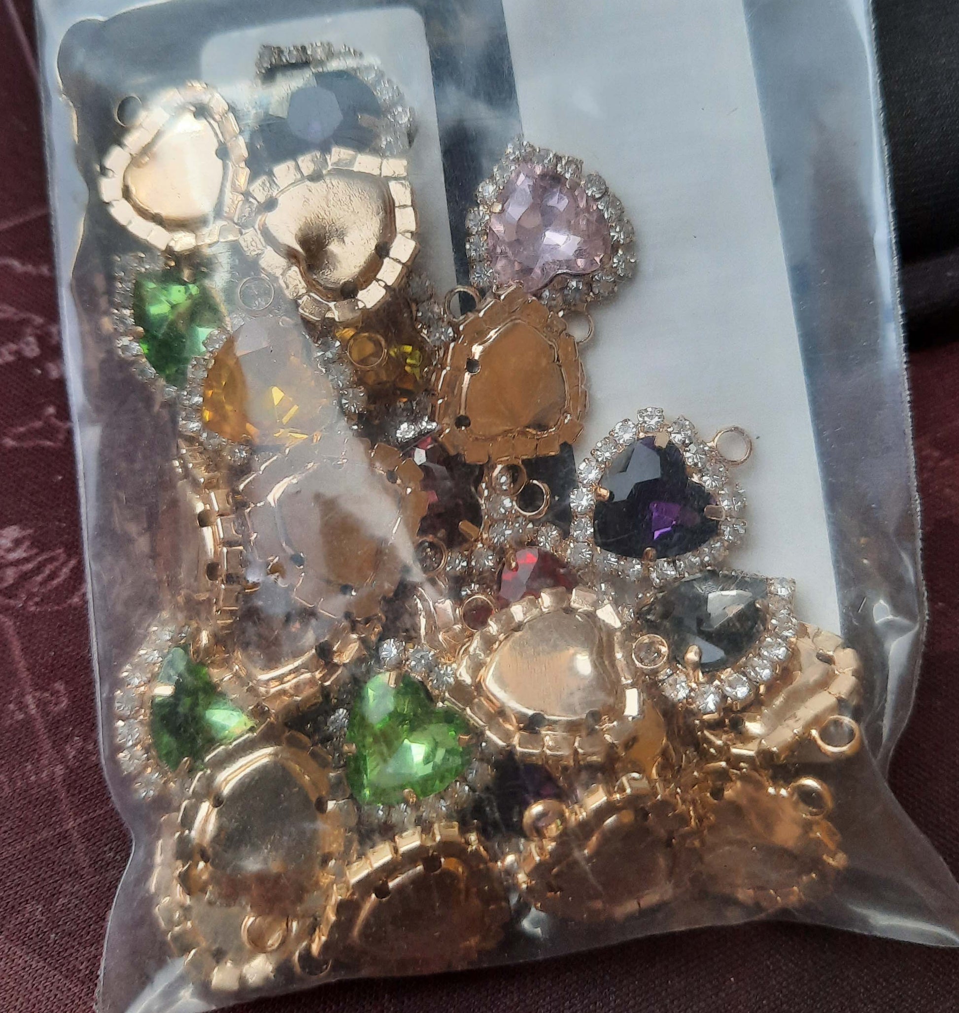 29x Metal and glass hearts - approx. 2cm long (including loop)