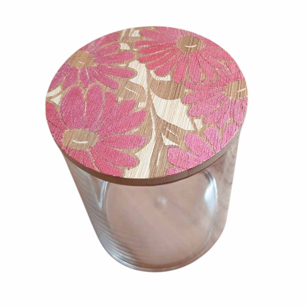 Decorative cannisters, ideal for storing small items.  The decorative bamboo lid comes in a range of metallic colours.