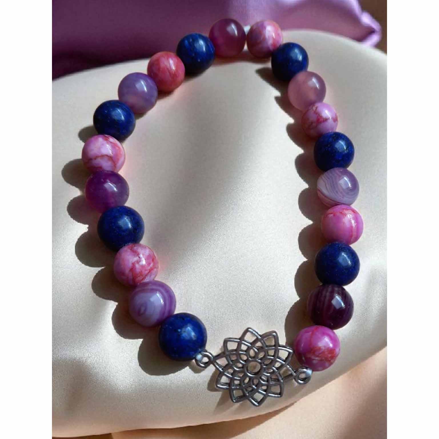 Stones: Pink marble agate, Purple / mauve agate, blue lapis lazuli