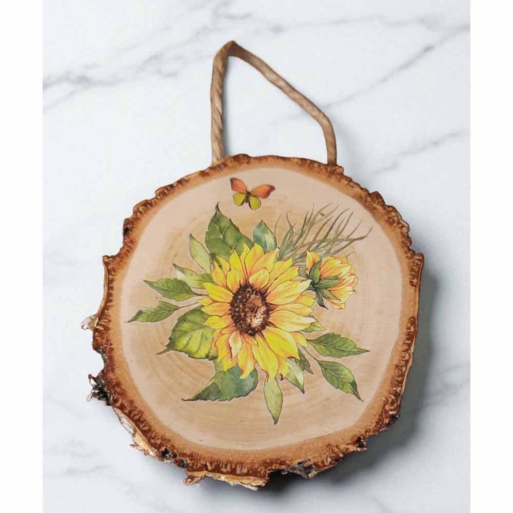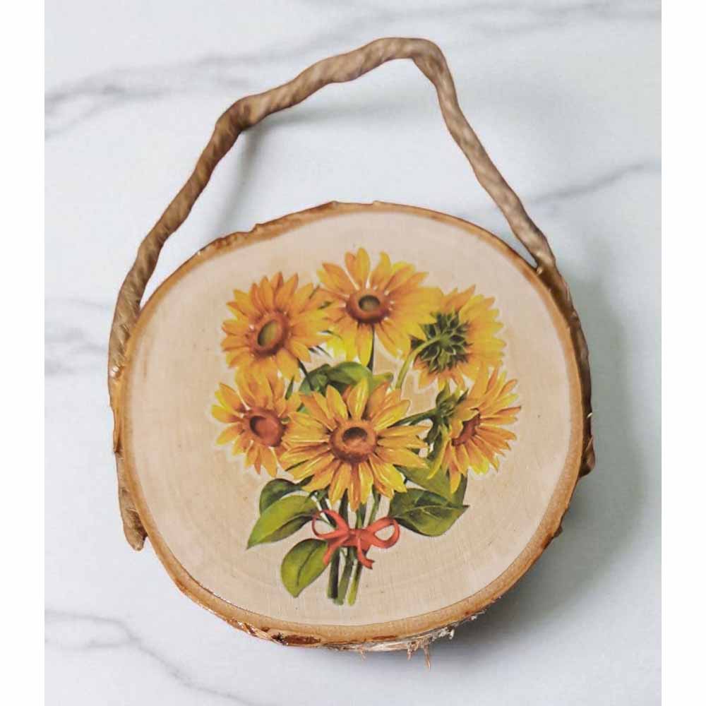 These pretty little wall hanging signs are decorated with sunflowers and varnished to create a hard wearing, long lasting finish.