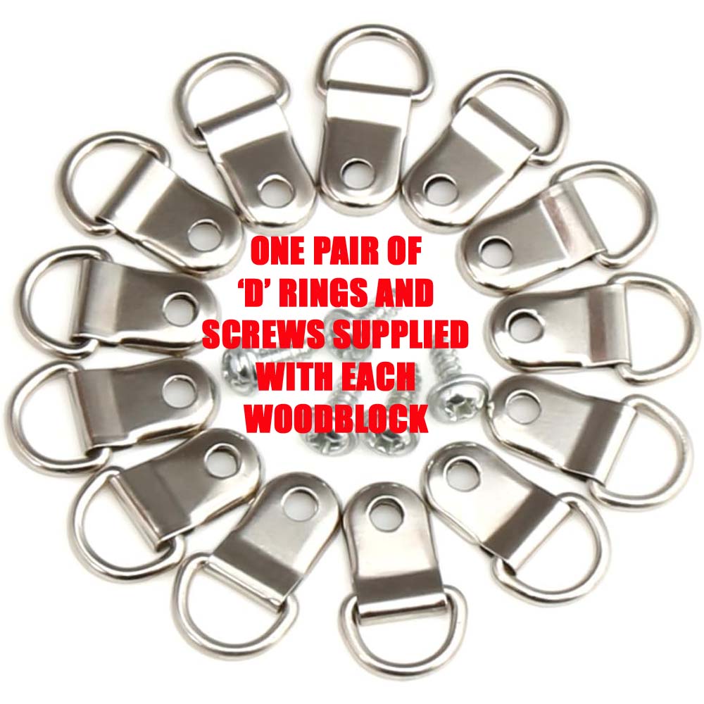 Designed to be free standing but supplied with a separate pair of 'D' rings and screws for you to attach if you would prefer your block as a hanging sign.