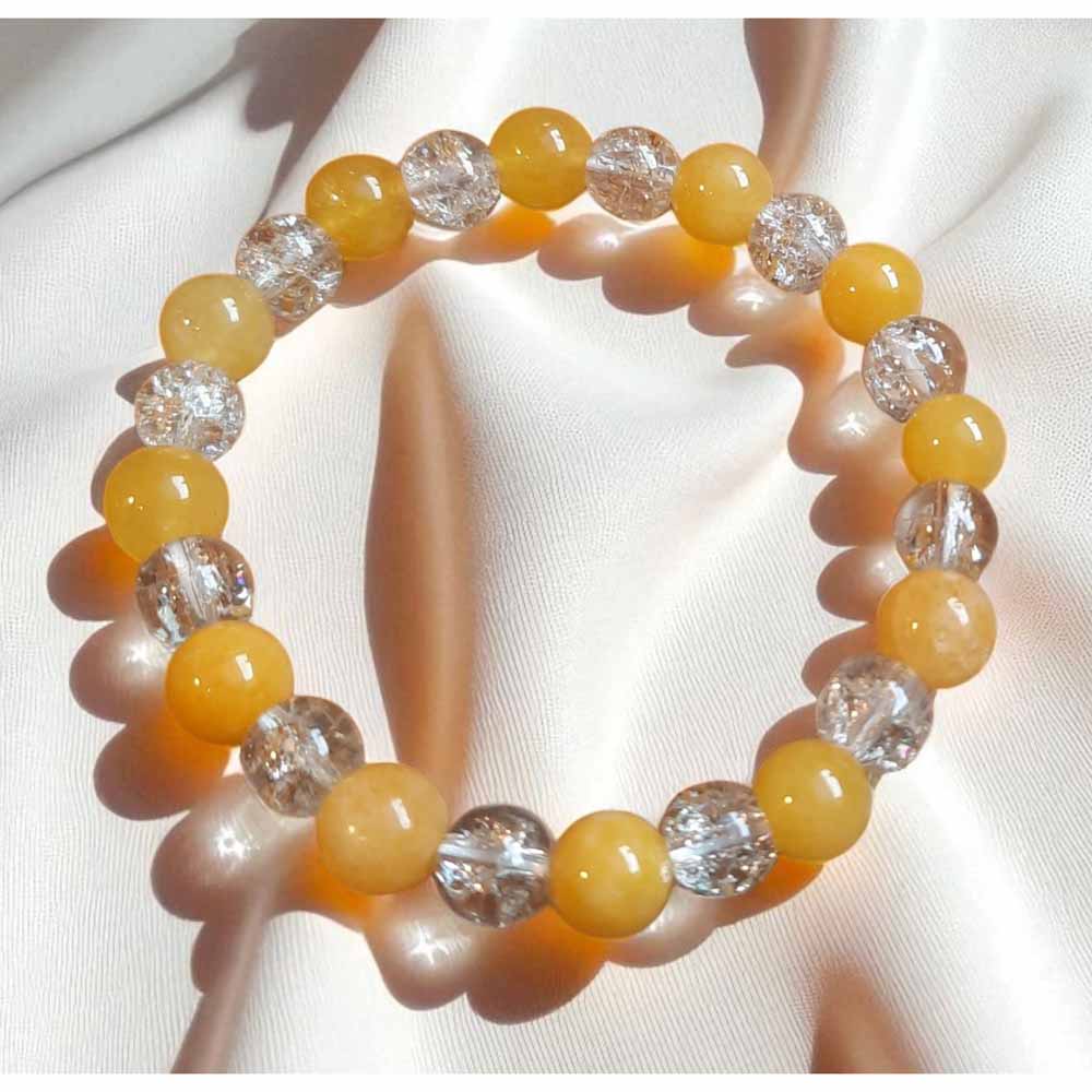 Bold yellow bracelet with clear glass crackle beads to add sparkle.